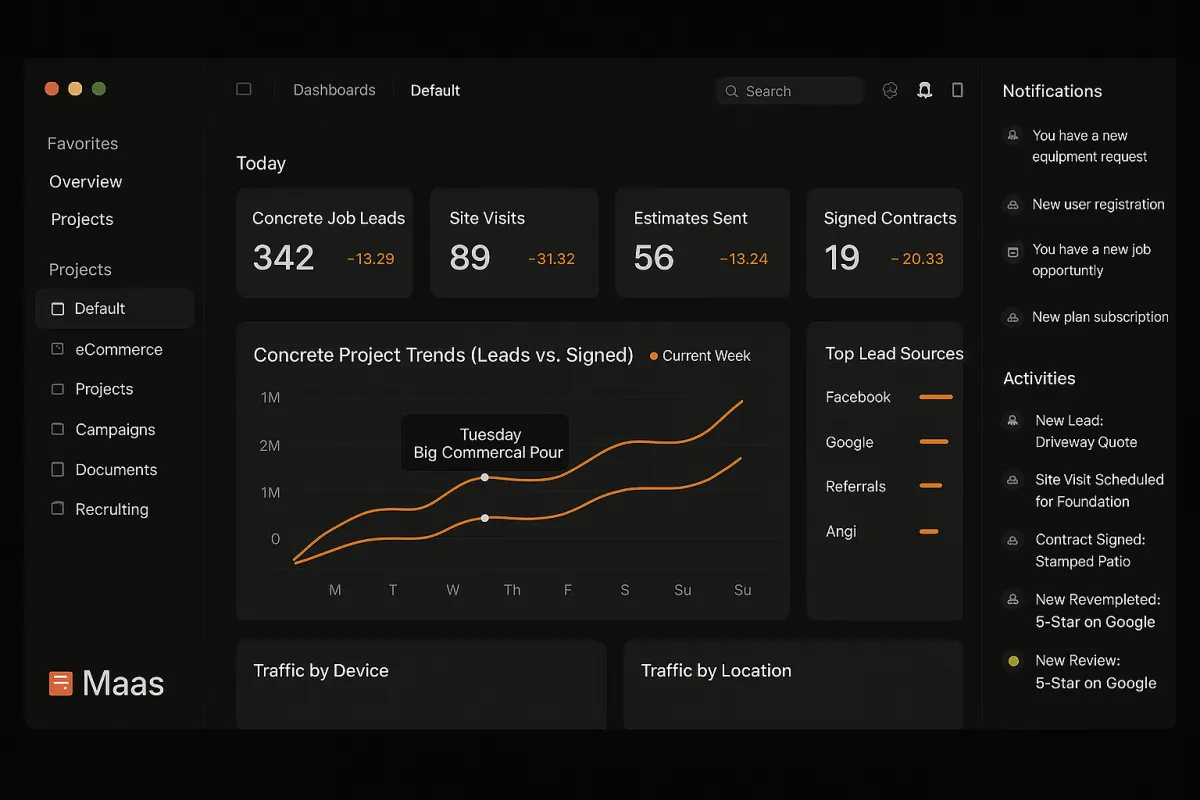 We help concrete contractors get consistent, qualified leads using paid ads, AI follow-ups, and automated booking systems. Instead of relying on word-of-mouth or platforms like HomeAdvisor, we bring direct inquiries from homeowners actively looking for concrete work in your service area.